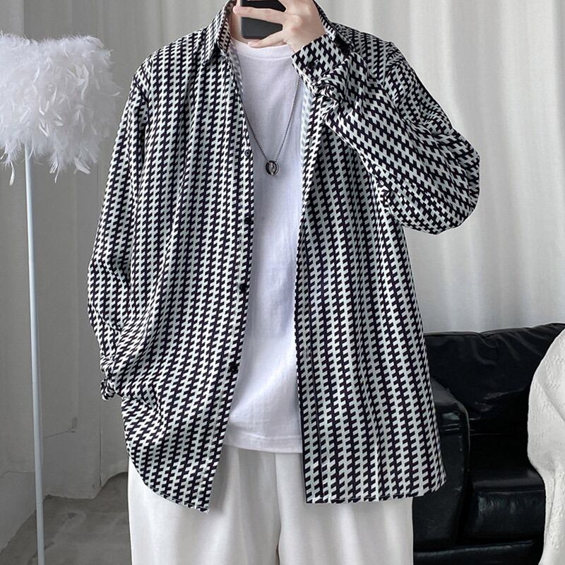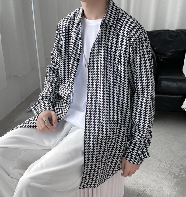 【韓国通販 dgo】モノトーンチェック柄シャツ 春秋 ブラック(M2075)センス溢れるファッションitem