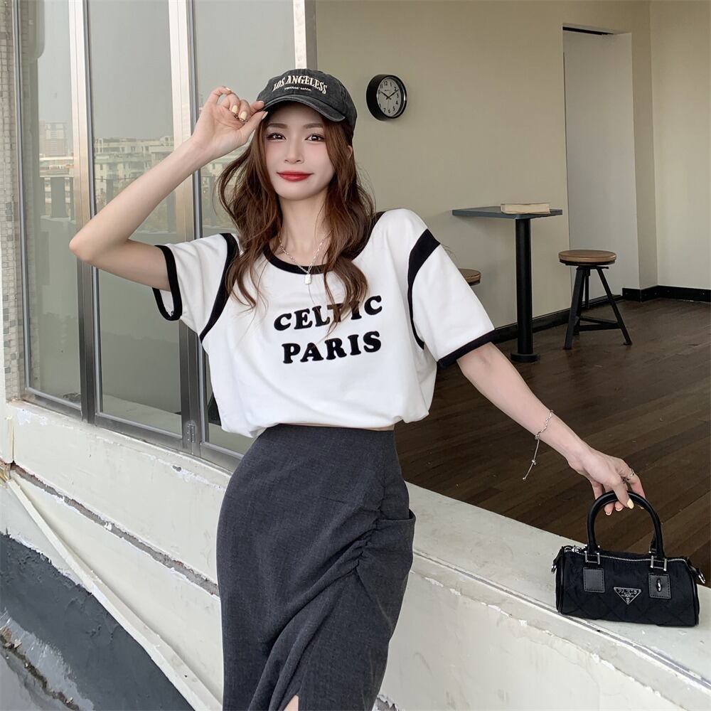 【韓国通販 dgo】モノトーン英レタープリントTシャツ 春夏 (W2067)トレンドアイテム