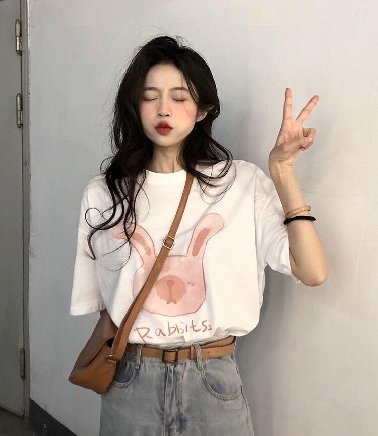 【韓国通販 dgo】スリープラビットTシャツ 春夏 2colors(W2065)センス溢れるファッションitem