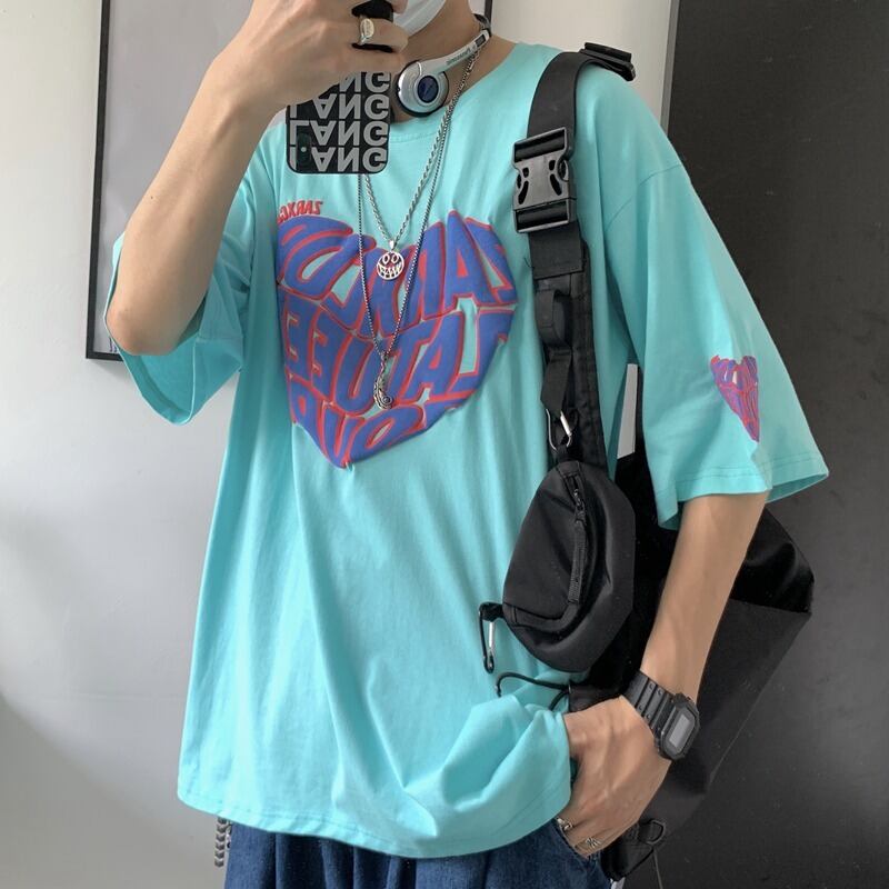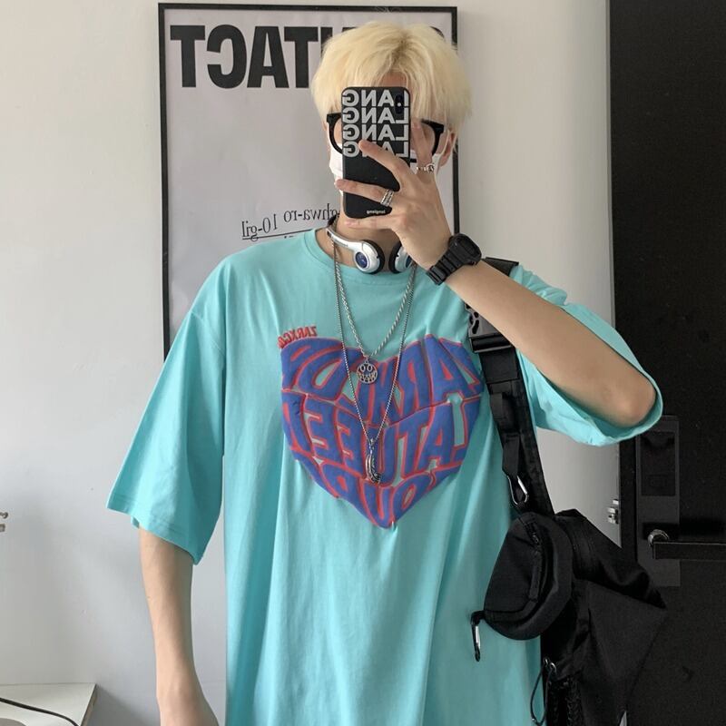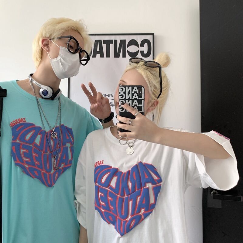 【韓国通販 dgo】ユニセックス 英レタープリントTシャツ 2colors ホワイト/ライトブルー(M2057)トレンドアイテム