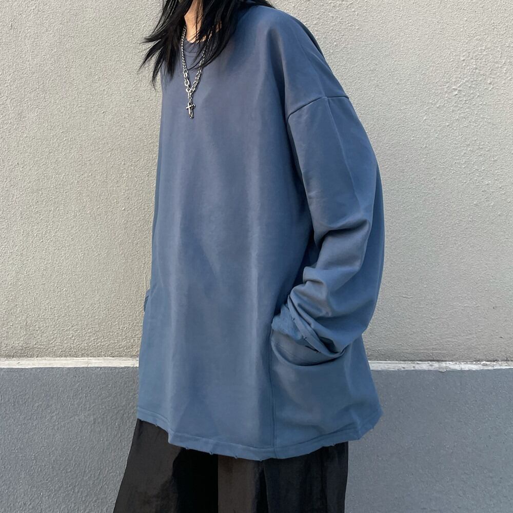 【韓国通販 dgo】ユニセックス オーバーサイズポケット付きロンT 2colors ブラック/ホワイト/デニムブルー(M2056)センス溢れるファッションitem