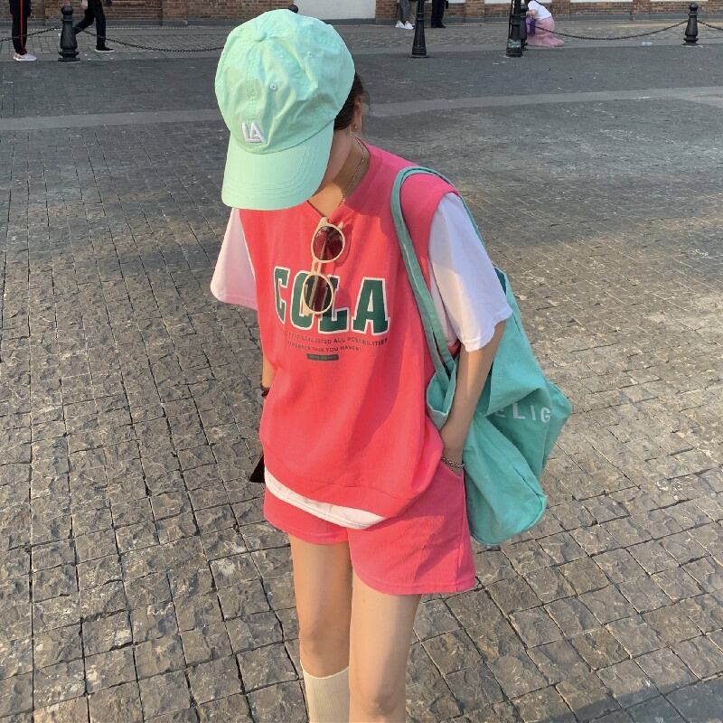【韓国通販 dgo】英ロゴフェイクTシャツ+ショートパンツ 3colors グレー/スカイブルー/ローズレッド(W2087)トレンドアイテム