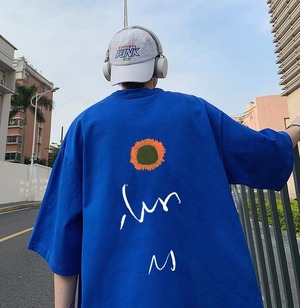 【韓国通販 dgo】オーバーサイズ クルーネックTシャツ"SUN" 4colors クラインブルー/ブラック/ライトブルー/ホワイト/ピンク(M2143)センス溢れるファッションitem