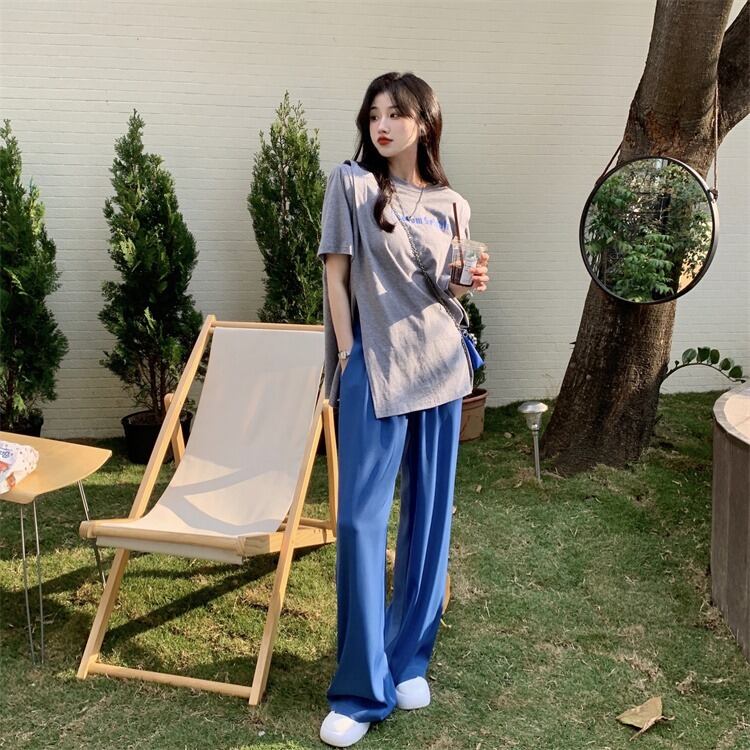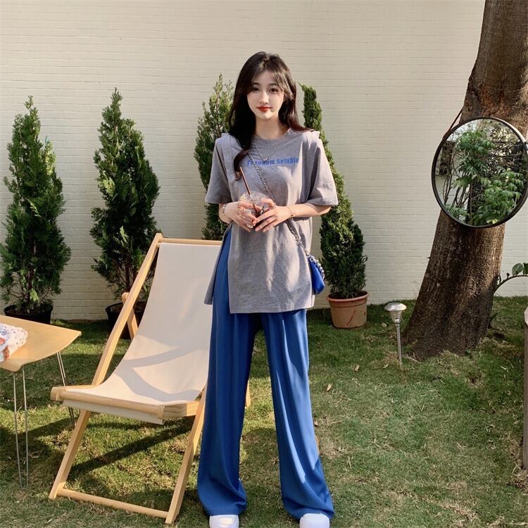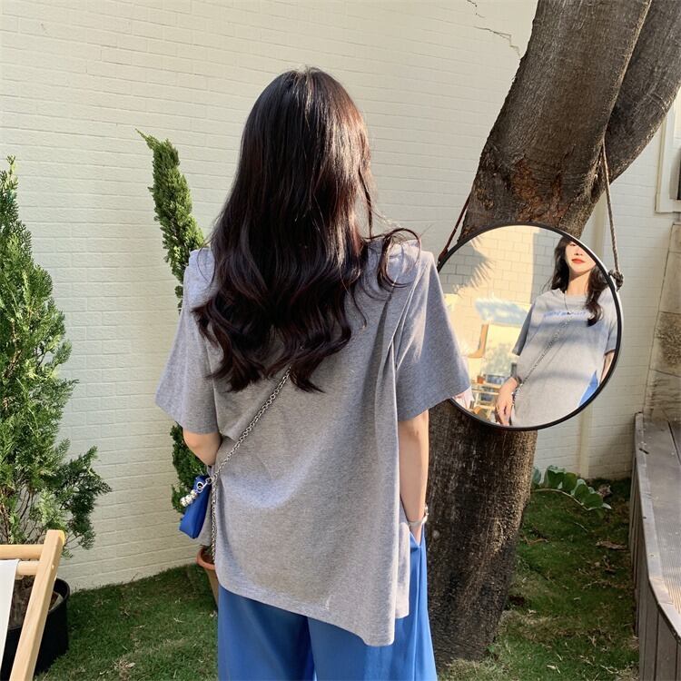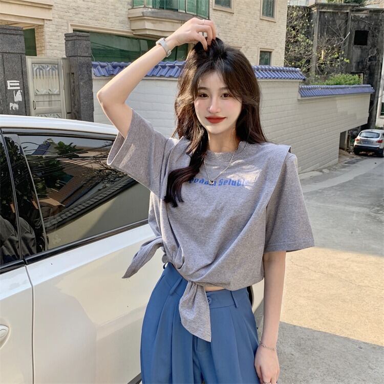 【韓国通販 dgo】英レタープリントスリットTシャツ 2colors ホワイト/グレー(W2140)トレンドアイテム