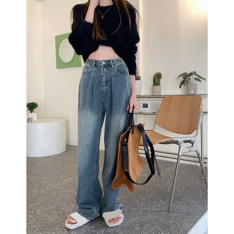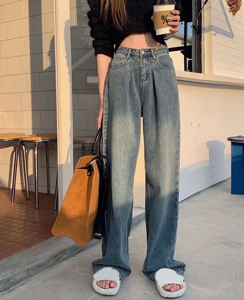 【韓国通販 dgo】ハイウエストワイドレッグジーンズ レトロブルー(W2132)