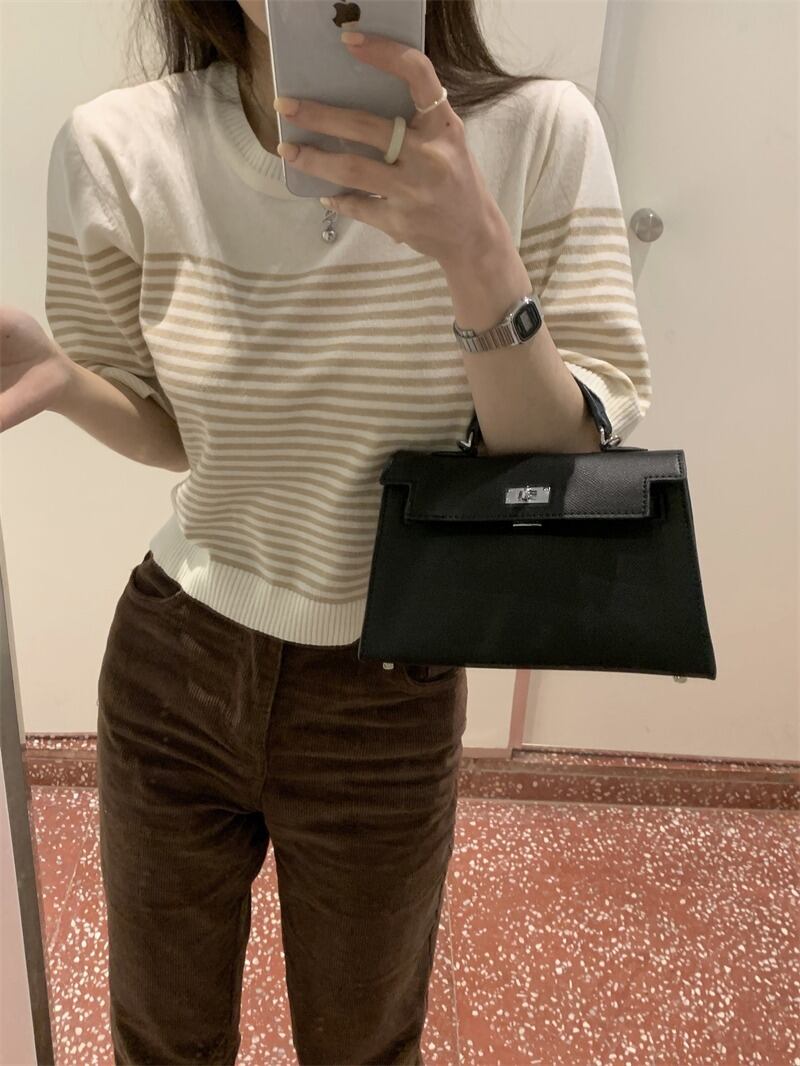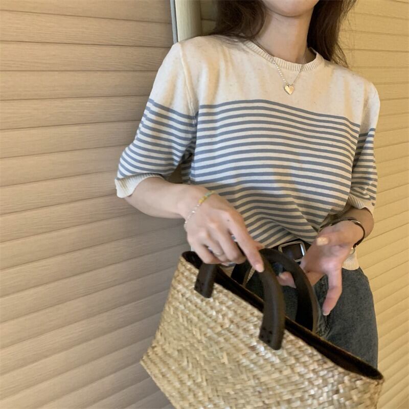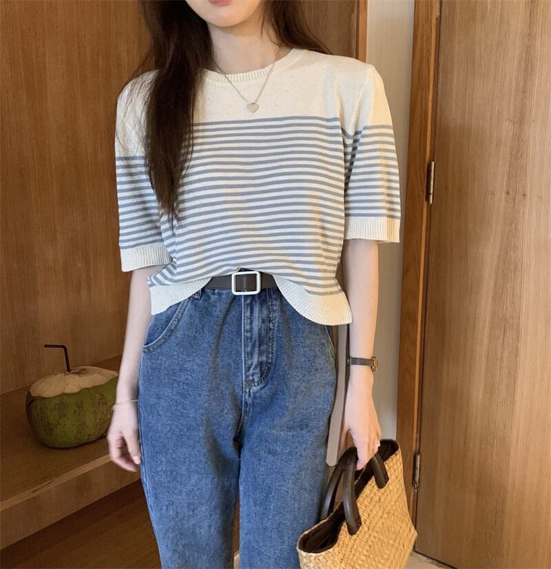 【韓国通販 dgo】ストライプニットセーター 3colors ブルー/ブラック/ブラウン(W2120)トレンドアイテム