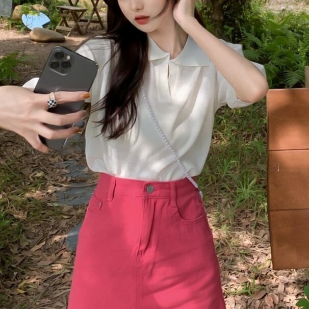 【韓国通販 dgo】ポロカラーニットトップス 4colors ミルクホワイト/パープル/ベイビーブルー/ブラック(W2111)
