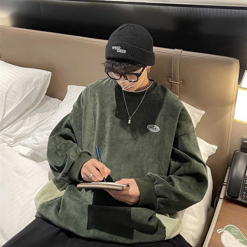 【韓国通販 dgo】クルーネックコーデュロイスウェット 春秋 4colors グリーン/ブラック/ブルー/アイボリー(M2109)トレンドアイテム