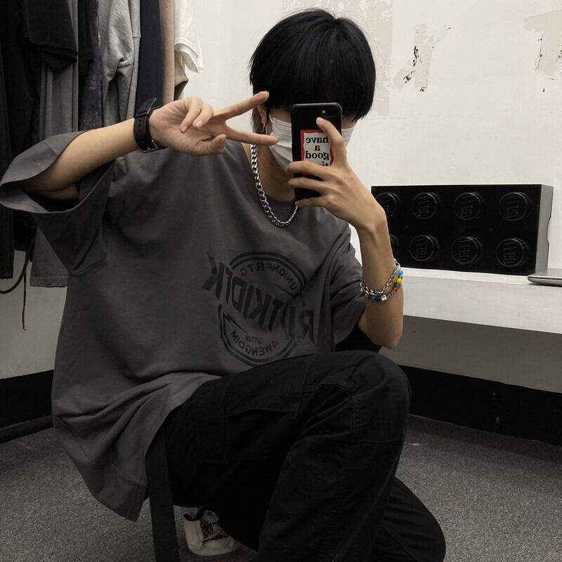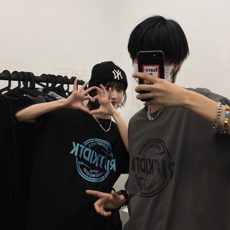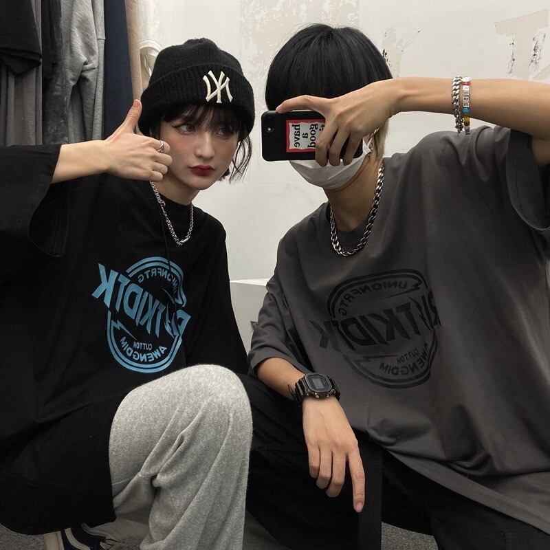 【韓国通販 dgo】ユニセックス 英ロゴプリントTシャツ 2colors ブラック/ダークグレー(W2106)センス溢れるファッションitem