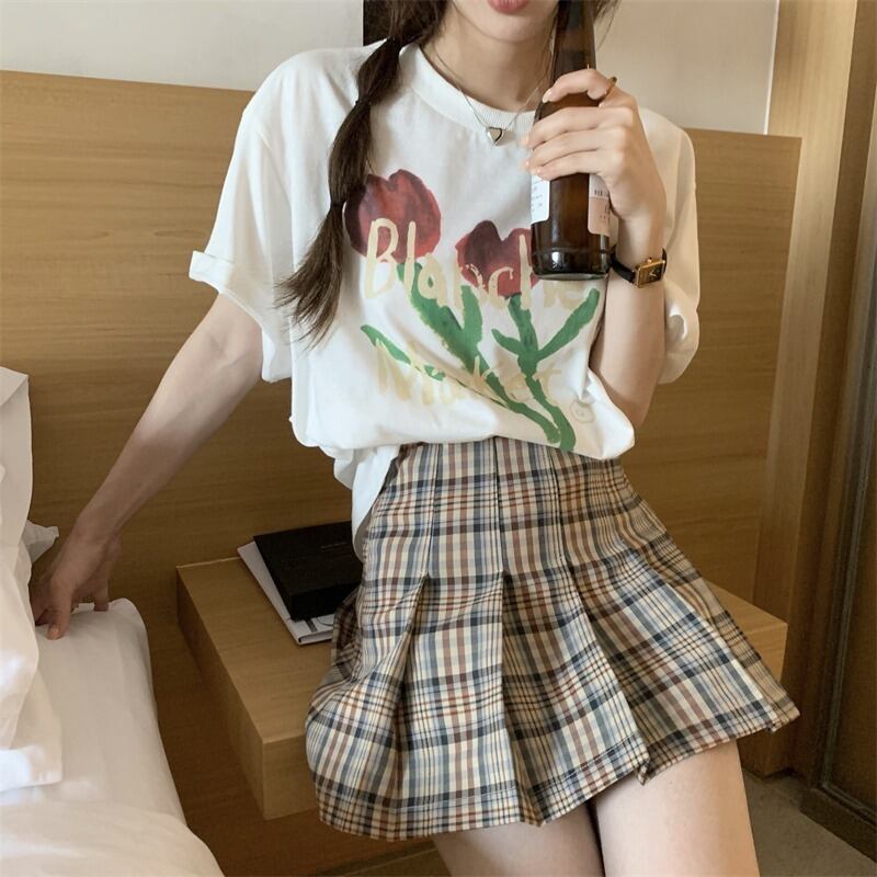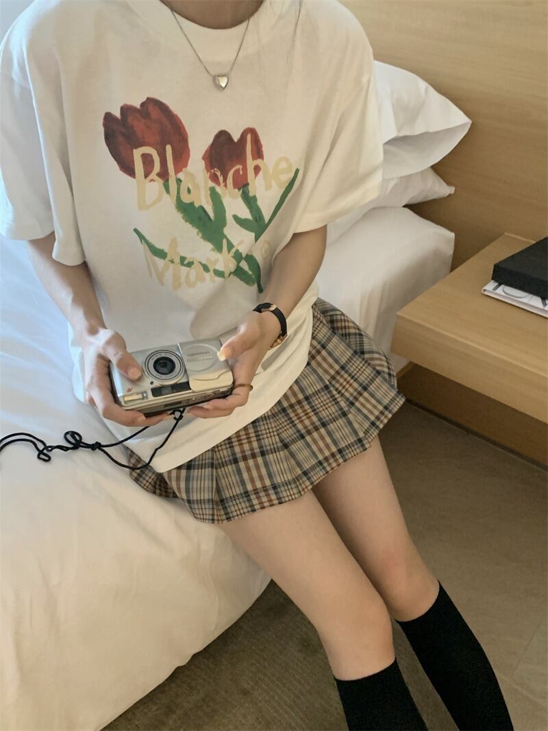 【韓国通販 dgo】オーバーサイズ英レタープリントTシャツ"flower" ホワイト(W2188)