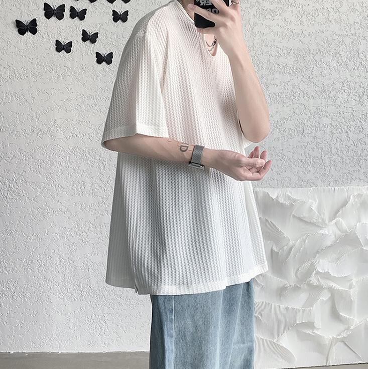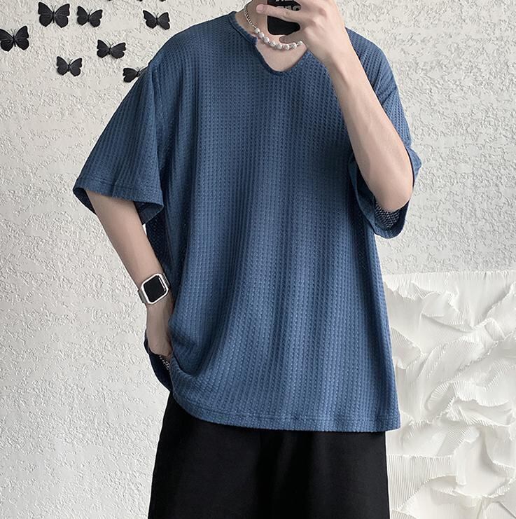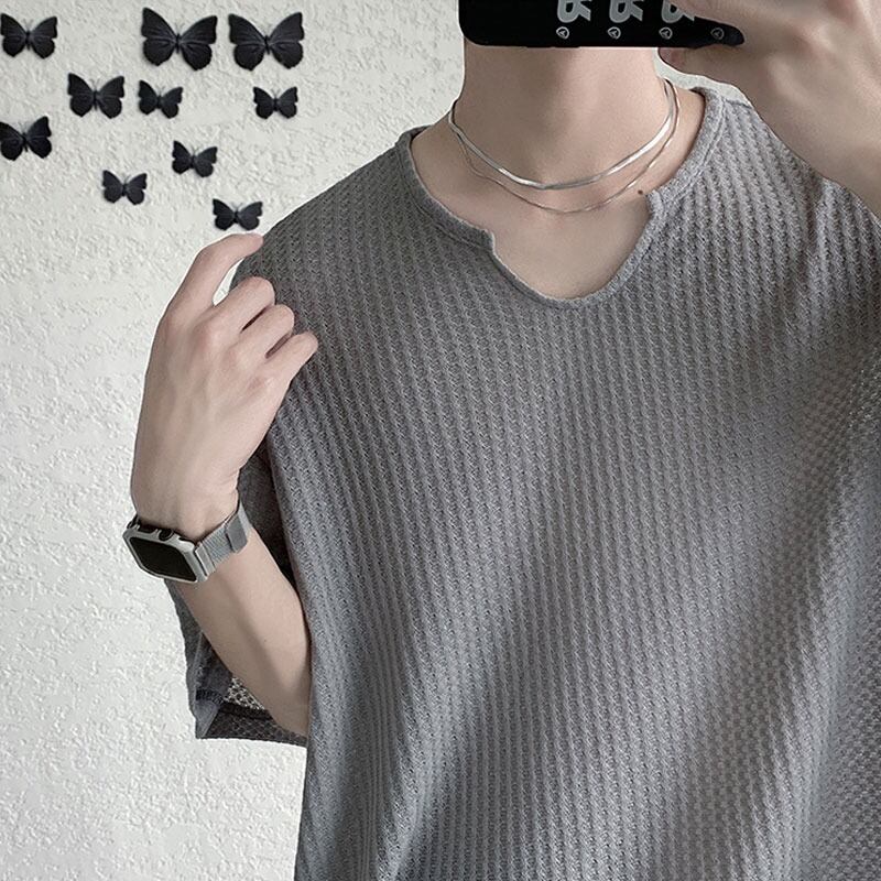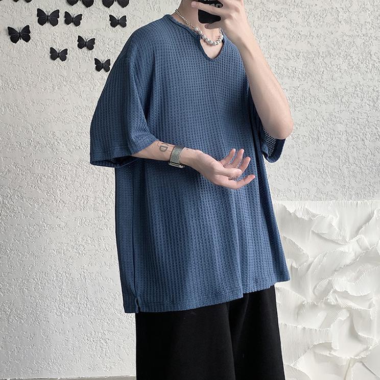 【韓国通販 dgo】4colors Vネックドロップショルダーシャツ 高品質 春夏 グレー/ホワイト/ブラック/ブルー(M2178)