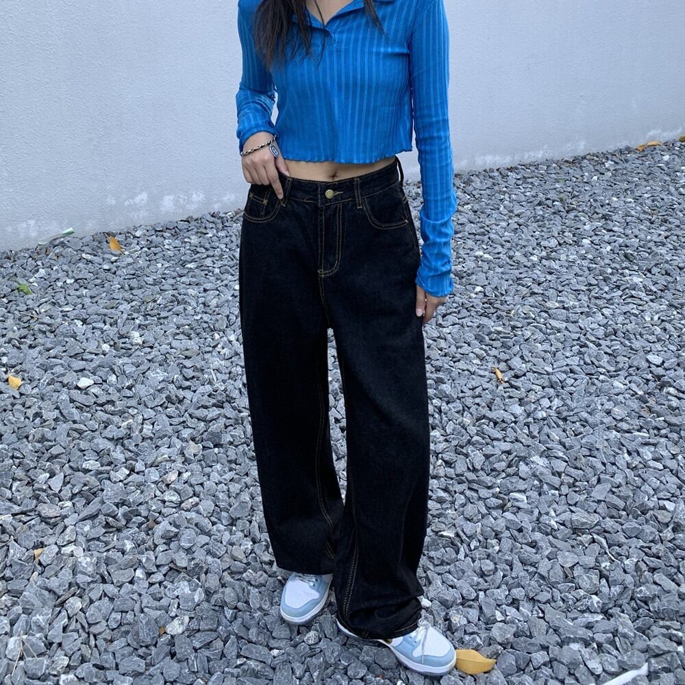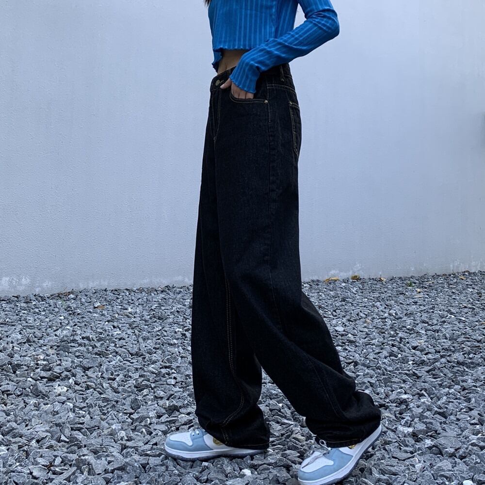 【韓国通販 dgo】ハイウエストデニムワイドレッグパンツ 春秋 ブラック(W2175)センス溢れるファッションitem