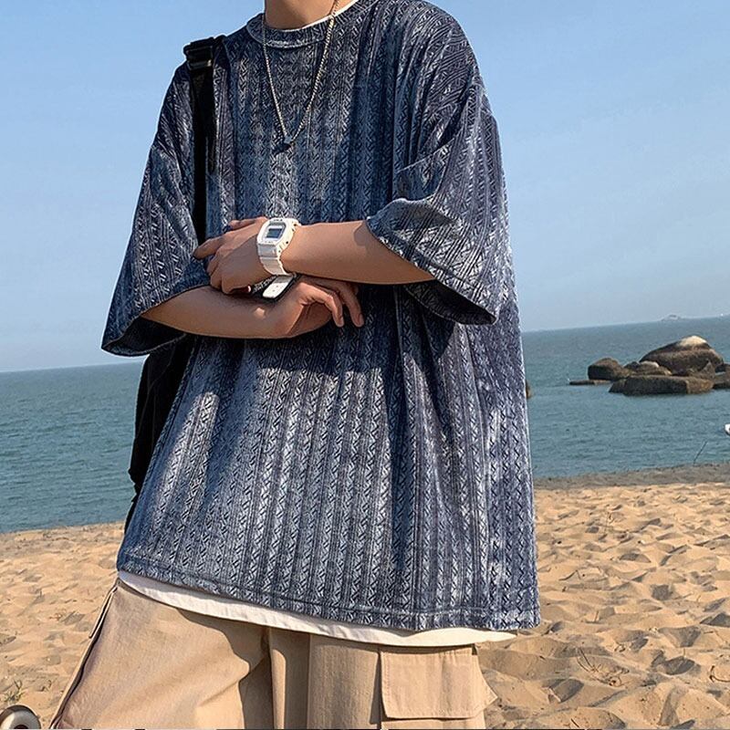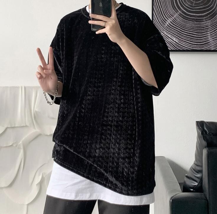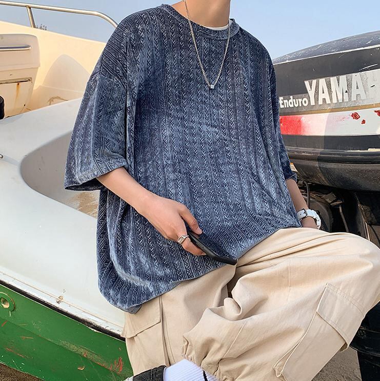 【韓国通販 dgo】2colors ヴィンテージハーフスリーブトップス 春夏 ネイビー/ブラック(M2171)