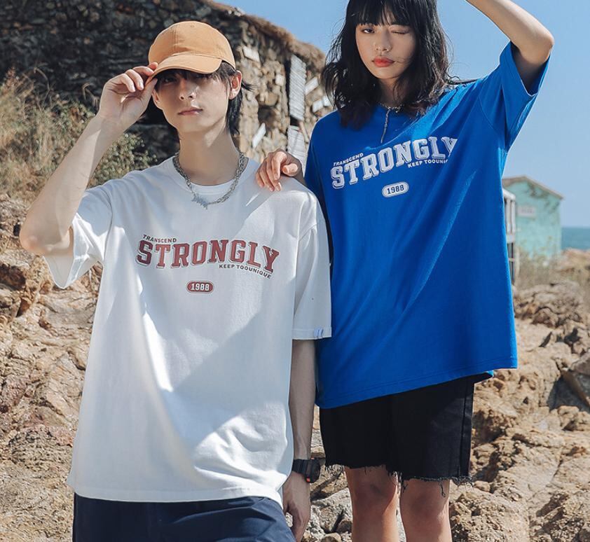 【韓国通販 dgo】3colors ユニセックス 英ロゴプリントTシャツ 春夏 ホワイト/クラインブルー/ブラック(M2170)トレンドアイテム