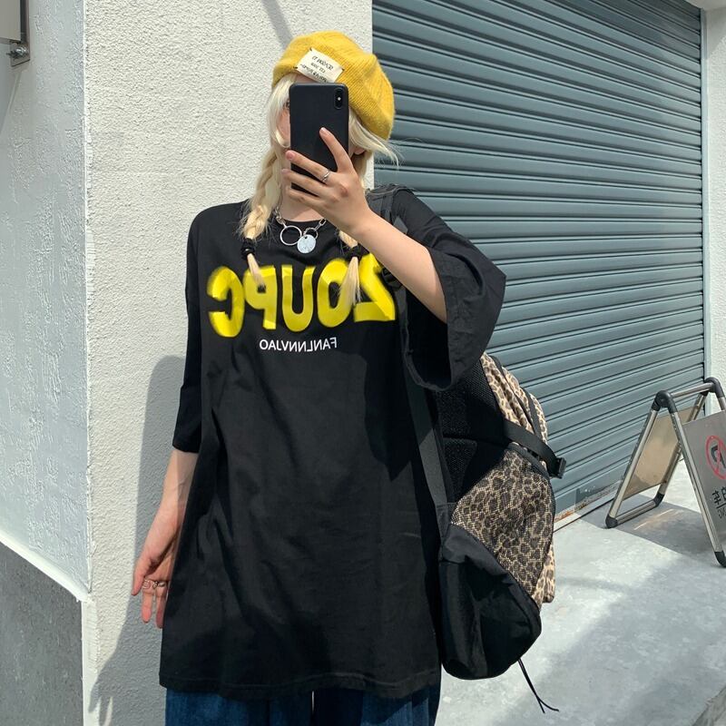 【韓国通販 dgo】2colors ユニセックス オーバーサイズBIG英ロゴTシャツ 春夏 ホワイト/ブラック(M2158)