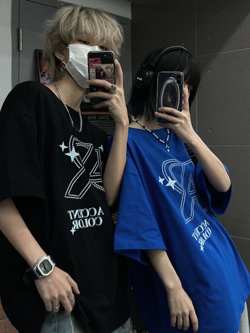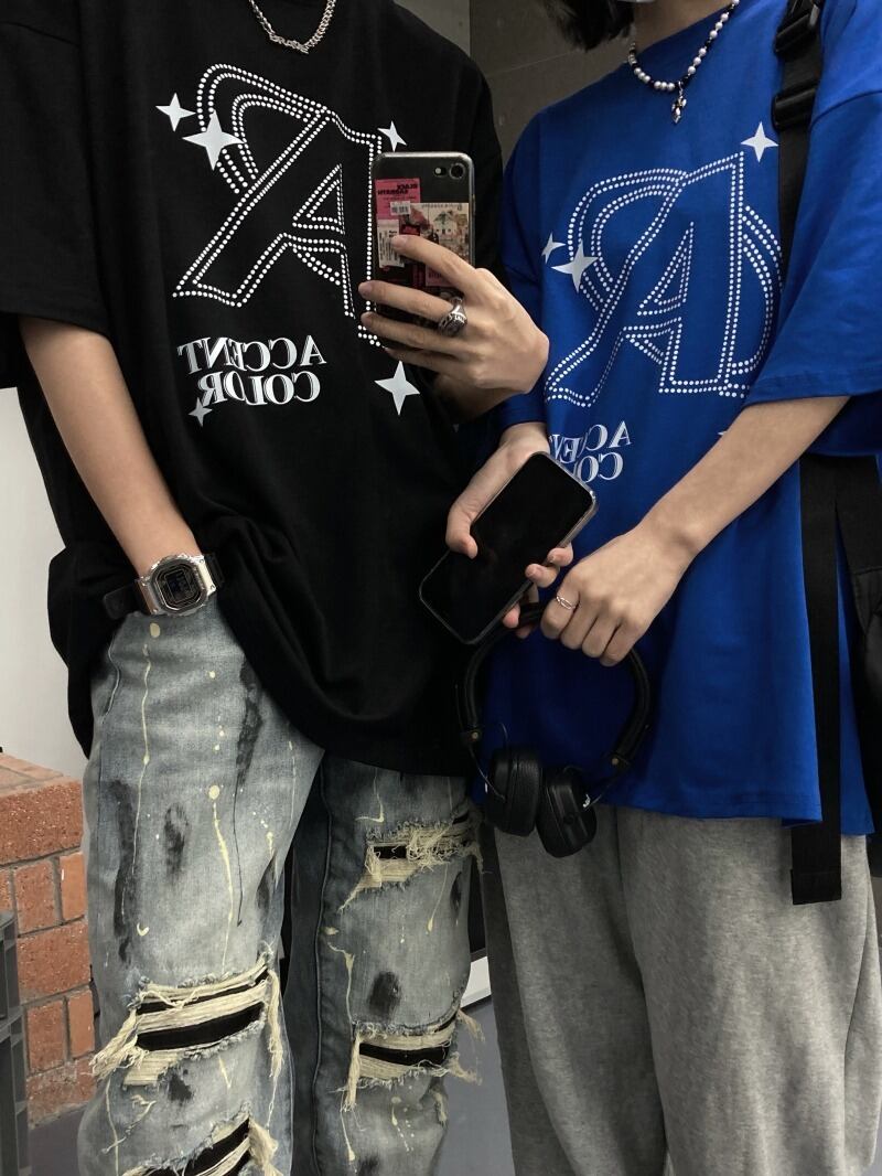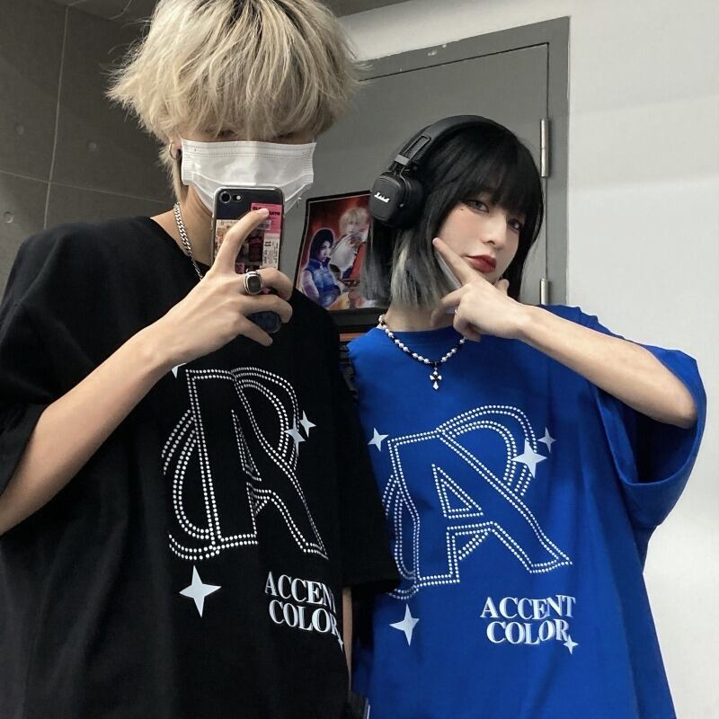 【韓国通販 dgo】2colors ユニセックス BIGアルファベットロゴTシャツ 春夏 ブラック/ブルー(M2156)センス溢れるファッションitem