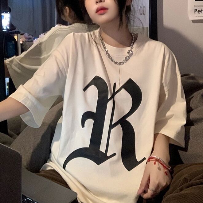 【韓国通販 dgo】レトロビッグアルファベットロゴTシャツ ホワイト(W2155)センス溢れるファッションitem