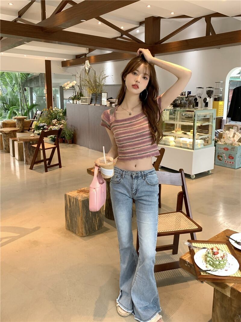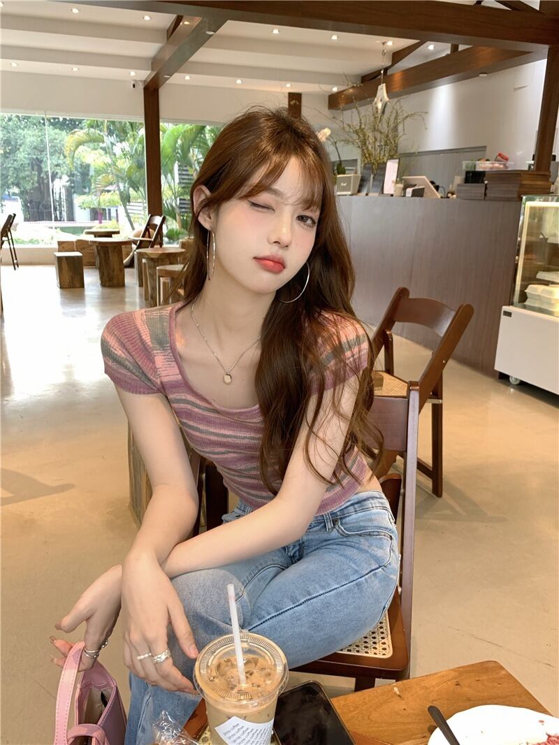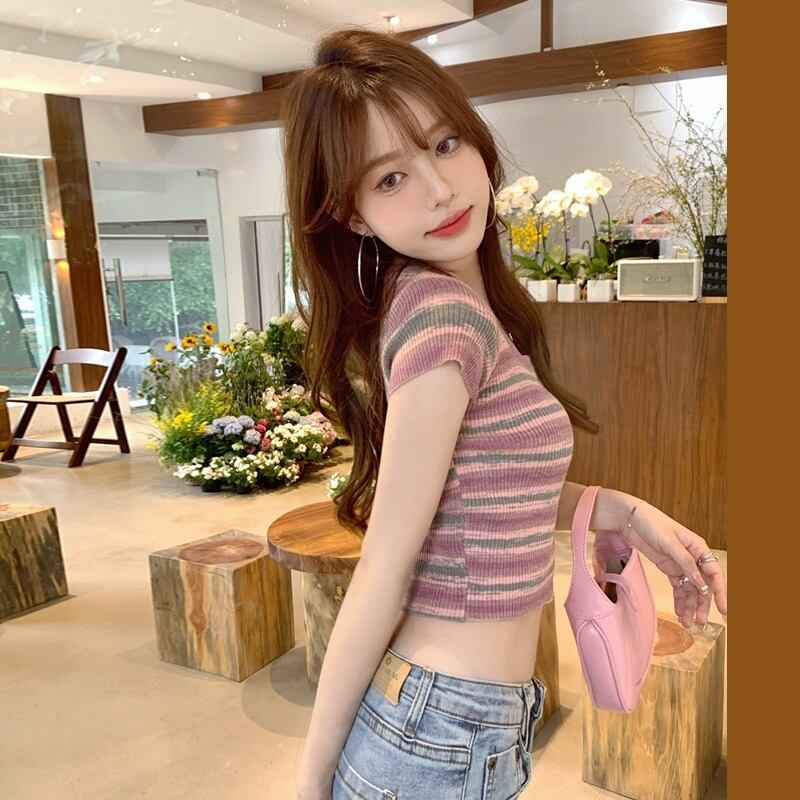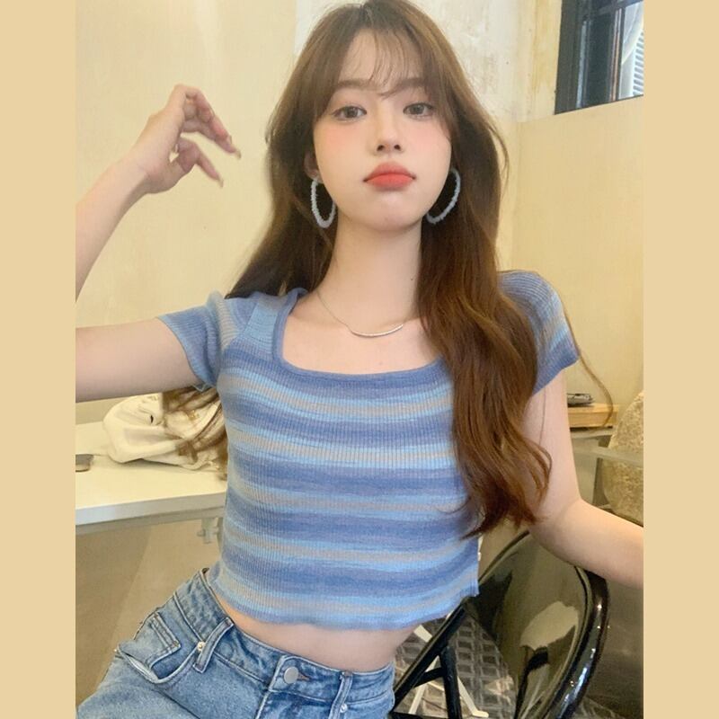 【韓国通販 dgo】スクエアネックカラフルショートニット 2colors ピンク/ブルー(W2153)センス溢れるファッションitem