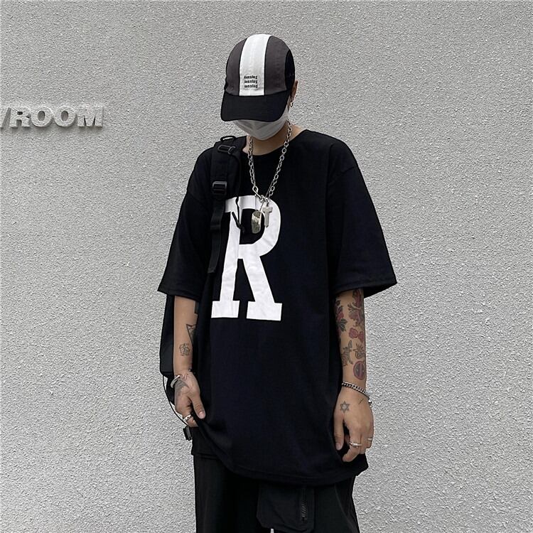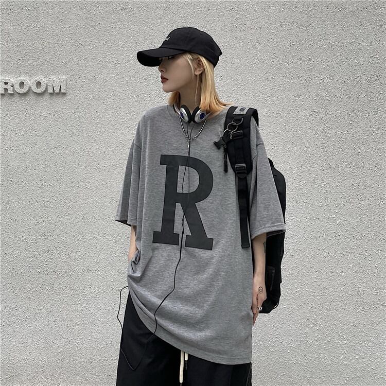 【韓国通販 dgo】ユニセックス ビッグアルファベットロゴTシャツ 2colors グレー/ブラック(M2152)