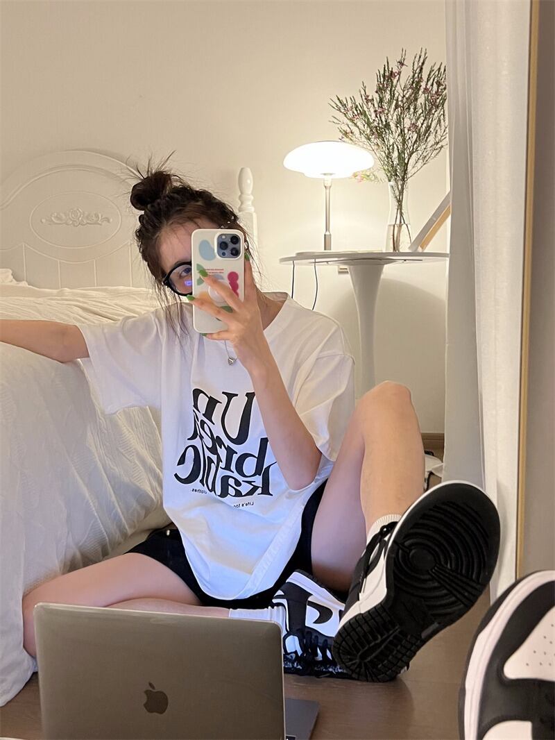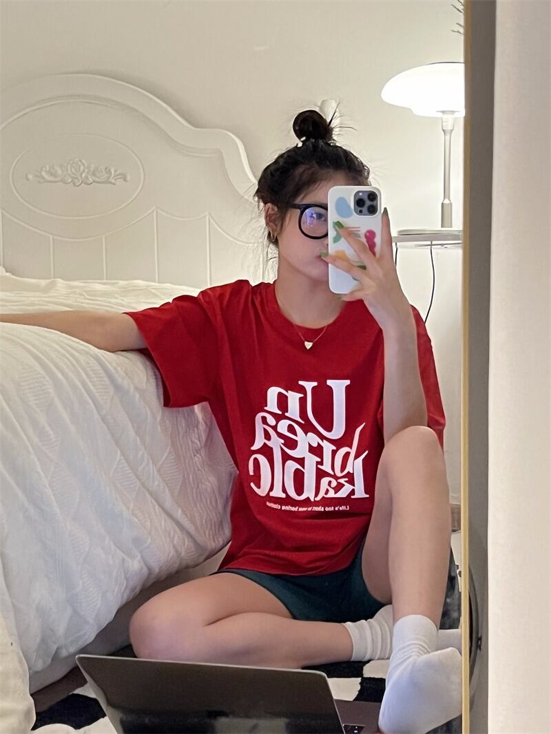 【韓国通販 dgo】3colors クルーネックオーバーサイズ英ロゴTシャツ ホワイト/ブラック/レッド(W2223)センス溢れるファッションitem