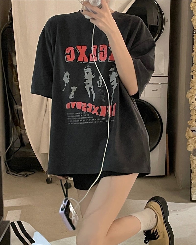 【韓国通販 dgo】オーバーサイズ英レターフォトプリントTシャツ(W2216)センス溢れるファッションitem