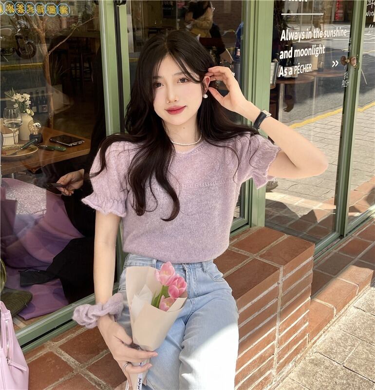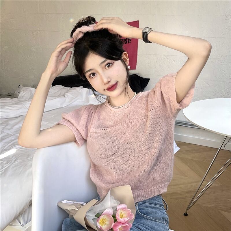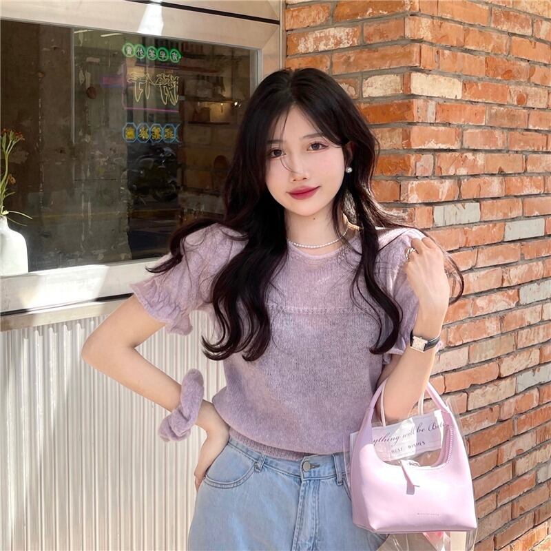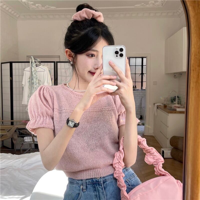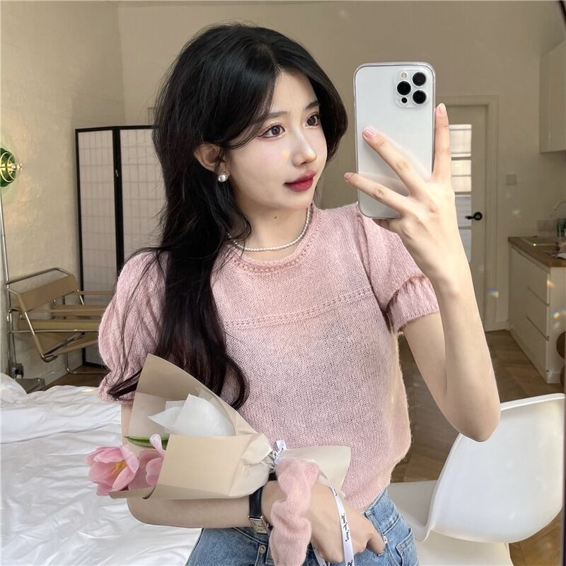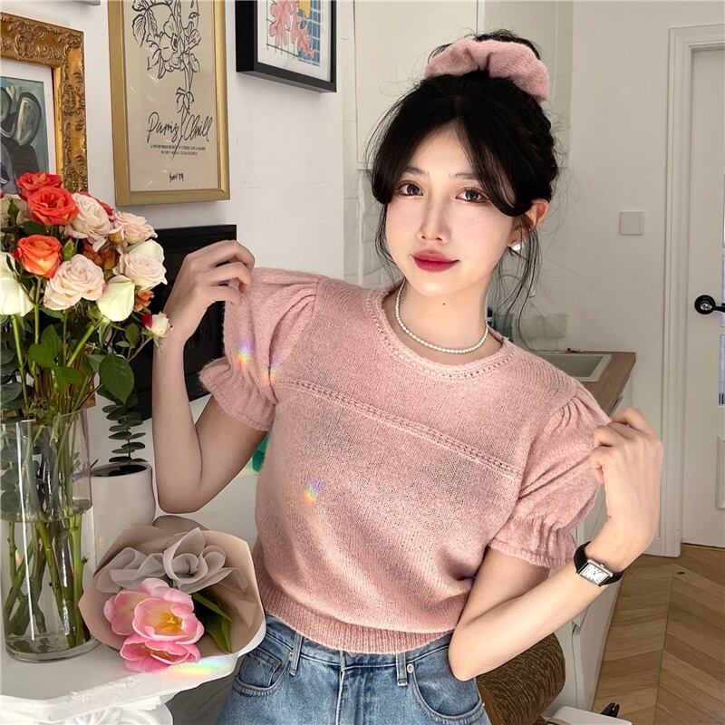 【韓国通販 dgo】2colors フレンチパフスリーブニット 春夏 ピンク/パープル(W2211)