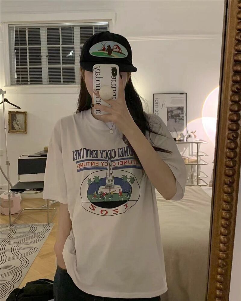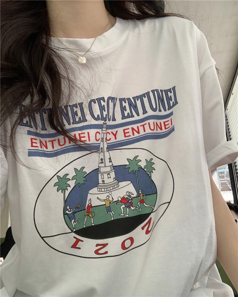 【韓国通販 dgo】クルーネック 英レタープリントTシャツ 2022春夏 ホワイト(W2203)センス溢れるファッションitem