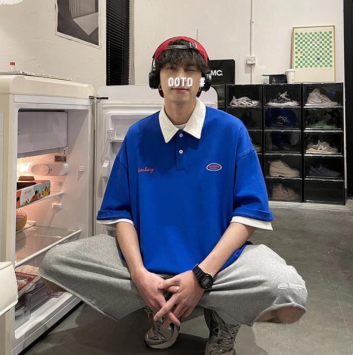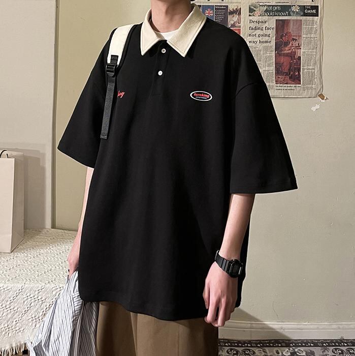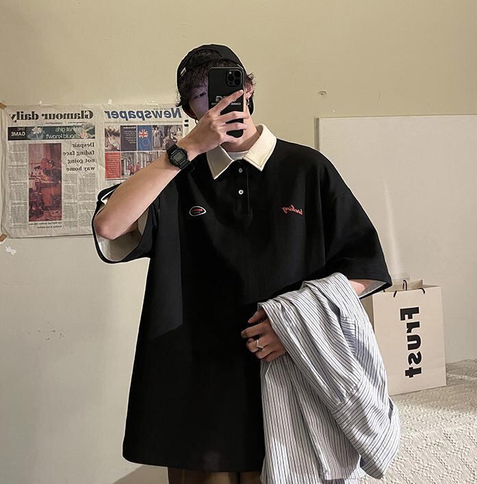【韓国通販 dgo】3colors オーバーサイズハーフボタンポロシャツ ホワイト/ブラック/ブルー(M2285)センス溢れるファッションitem