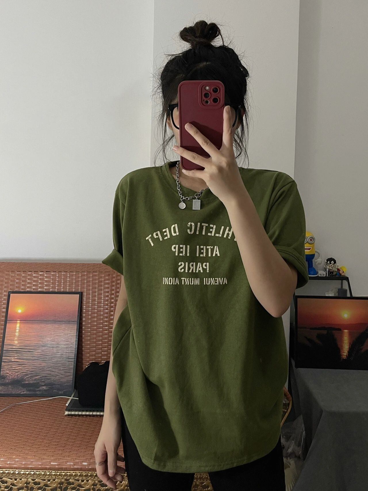 【韓国通販 dgo】クルーネックレタープリントTシャツ グリーン(W2268)