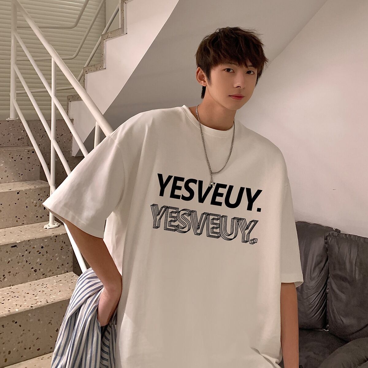 【韓国通販 dgo】5colors ドロップショルダーグラフィックTシャツ ホワイト/クラインブルー/グレー/ブラック/レイクブルー(M2274)
