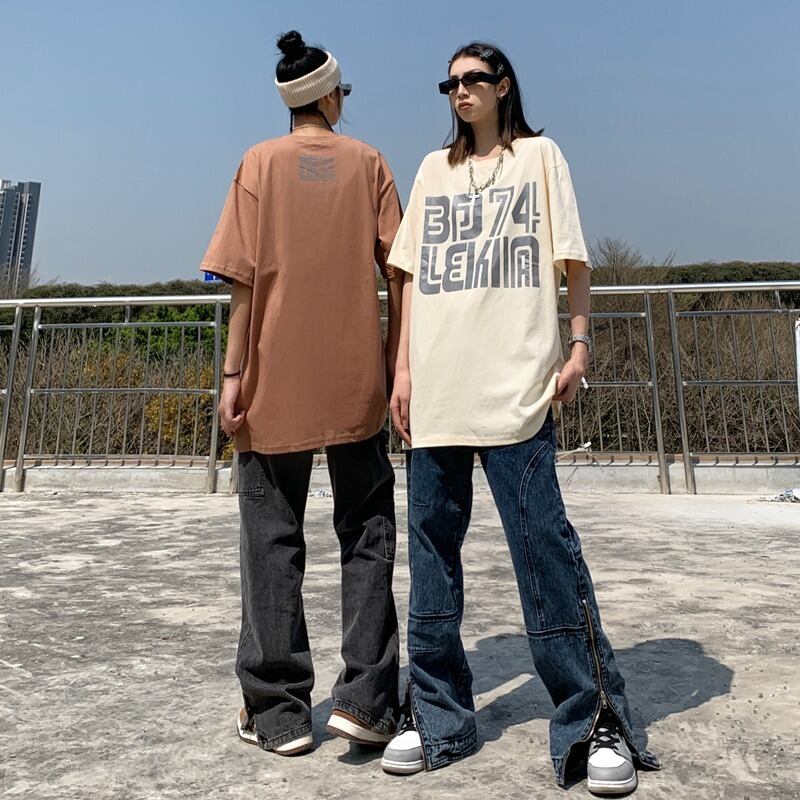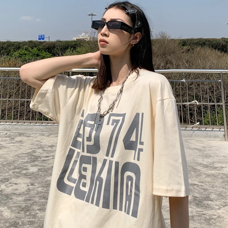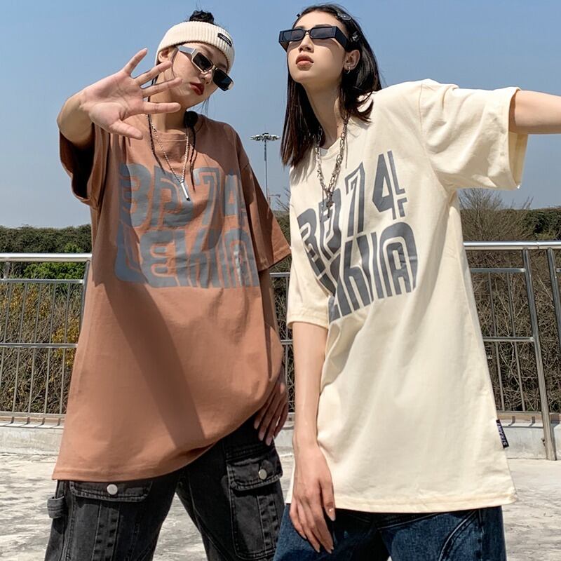 【韓国通販 dgo】2colors オーバーサイズ英ロゴプリントTシャツ ライトブラウン/アイボリー(W2247)トレンドアイテム