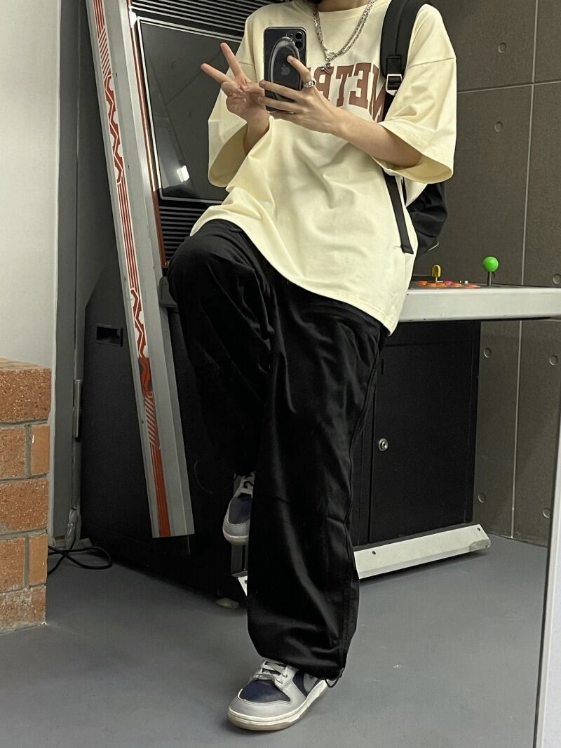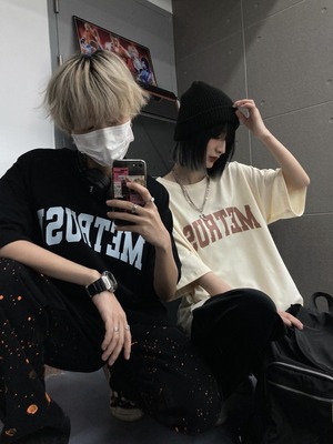 【韓国通販 dgo】2colors ユニセックス オーバーサイズ英レタープリントTシャツ ブラック/クリーム(M2251)