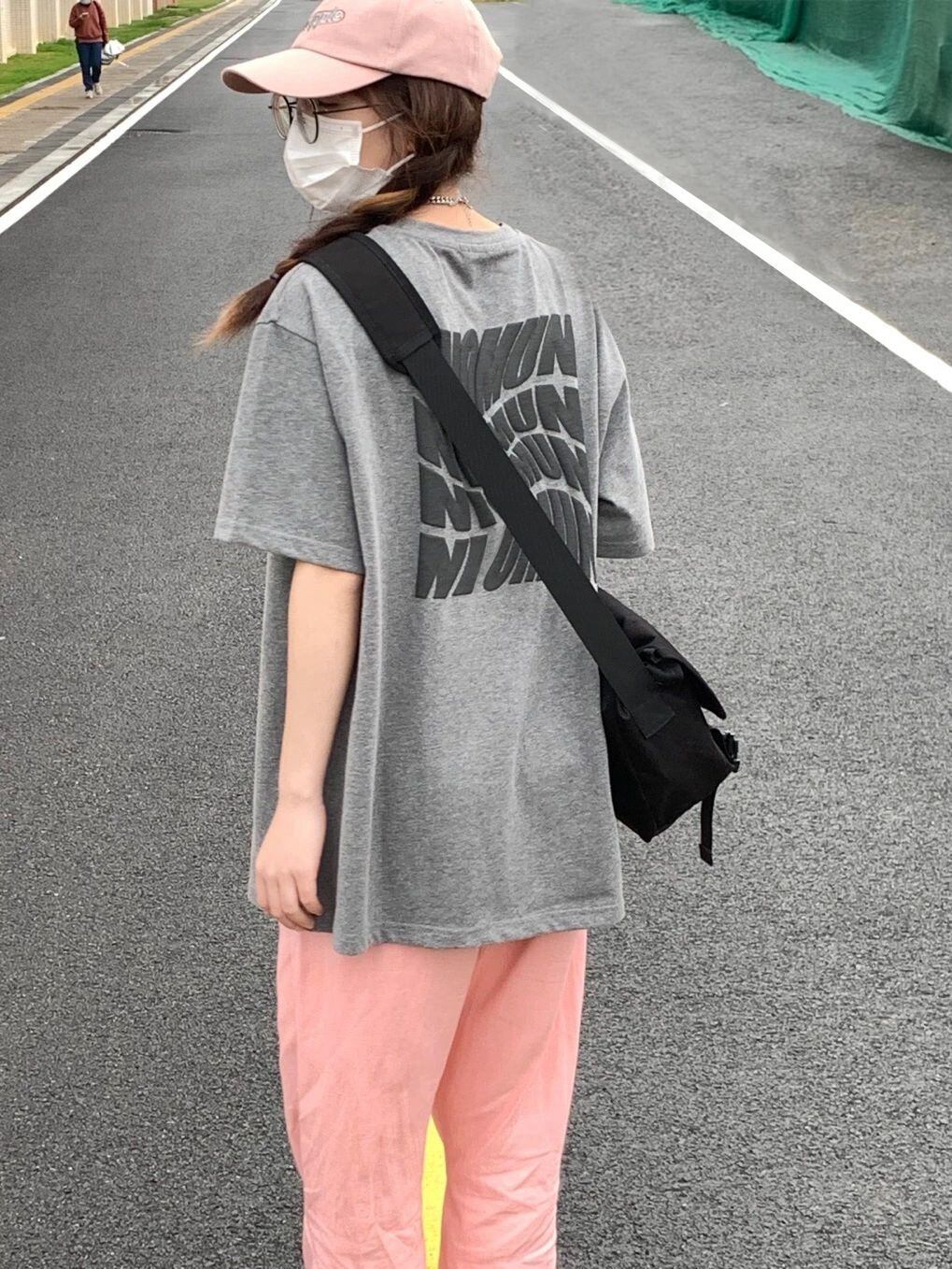 【韓国通販 dgo】オーバーサイズ 英レターTシャツ グレー(W2324)