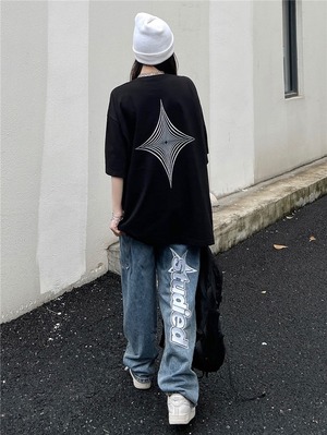 【韓国通販 dgo】オーバーサイズ バックグラフィックプリントTシャツ ブラック(W2323)センス溢れるファッションitem