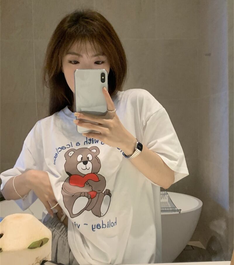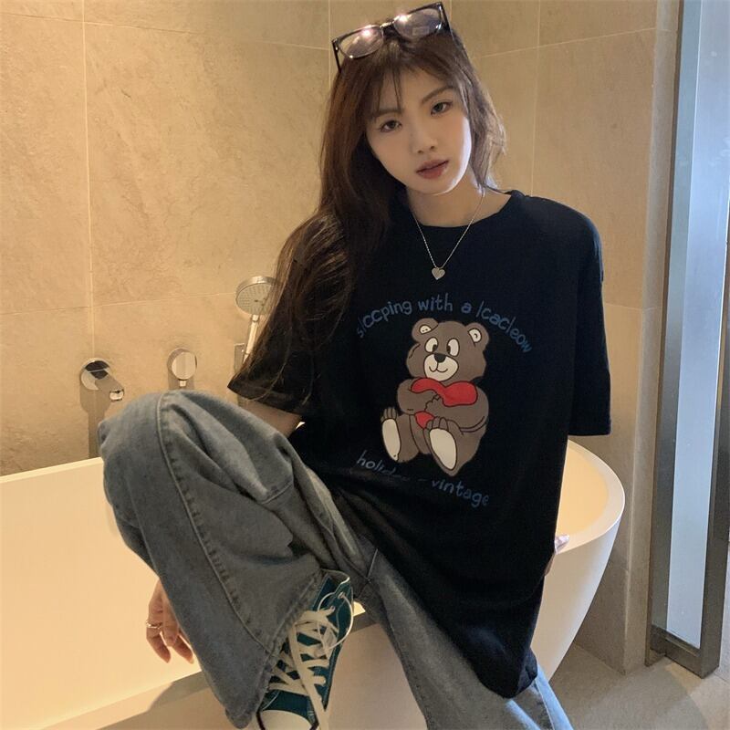 【韓国通販 dgo】2colors クルーネックベアプリントTシャツ ブラック/ホワイト(W2298)