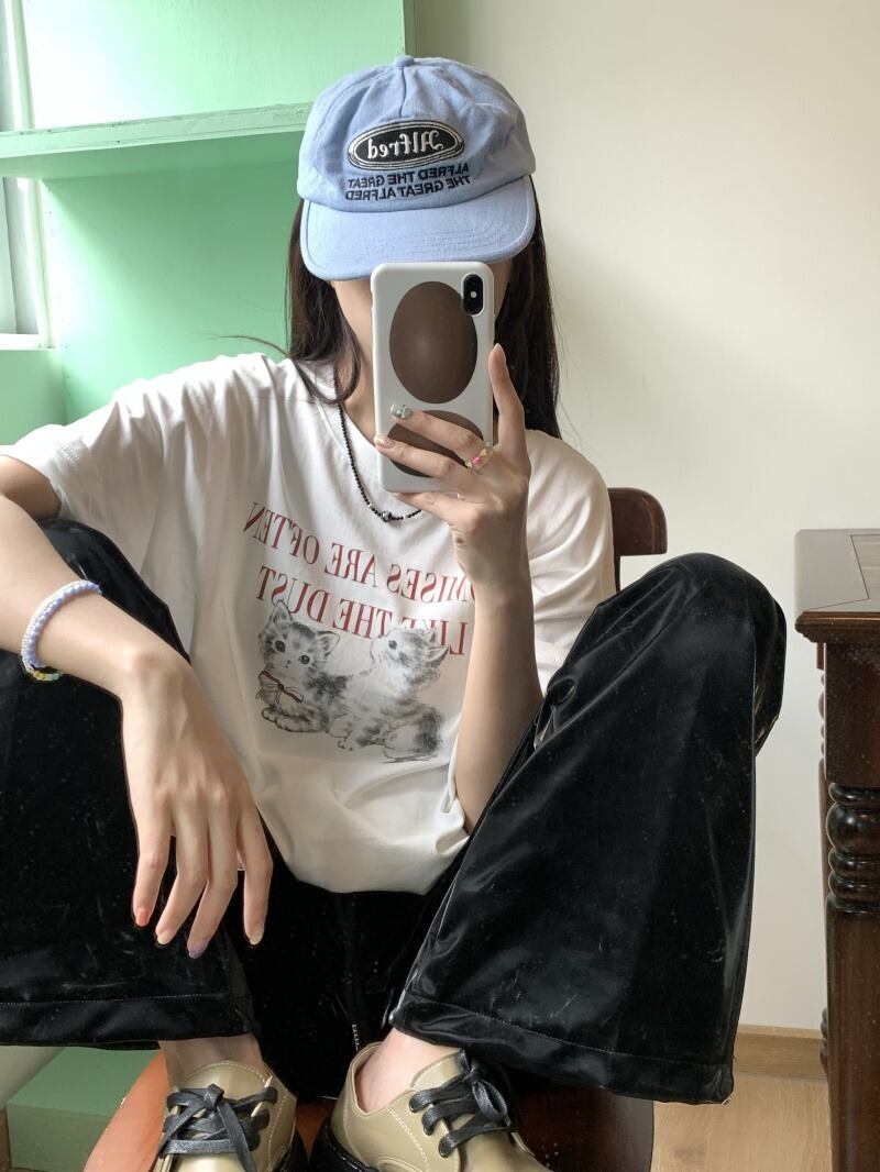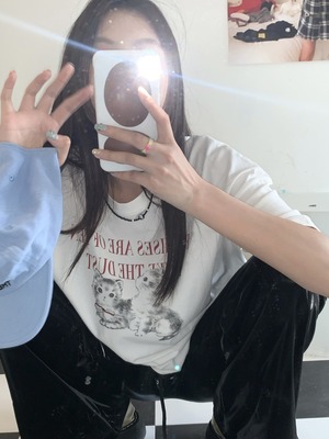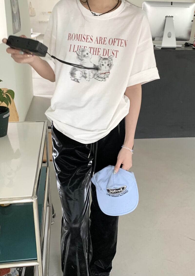 【韓国通販 dgo】レトロキャットサマーTシャツ ホワイト(W2293)センス溢れるファッションitem