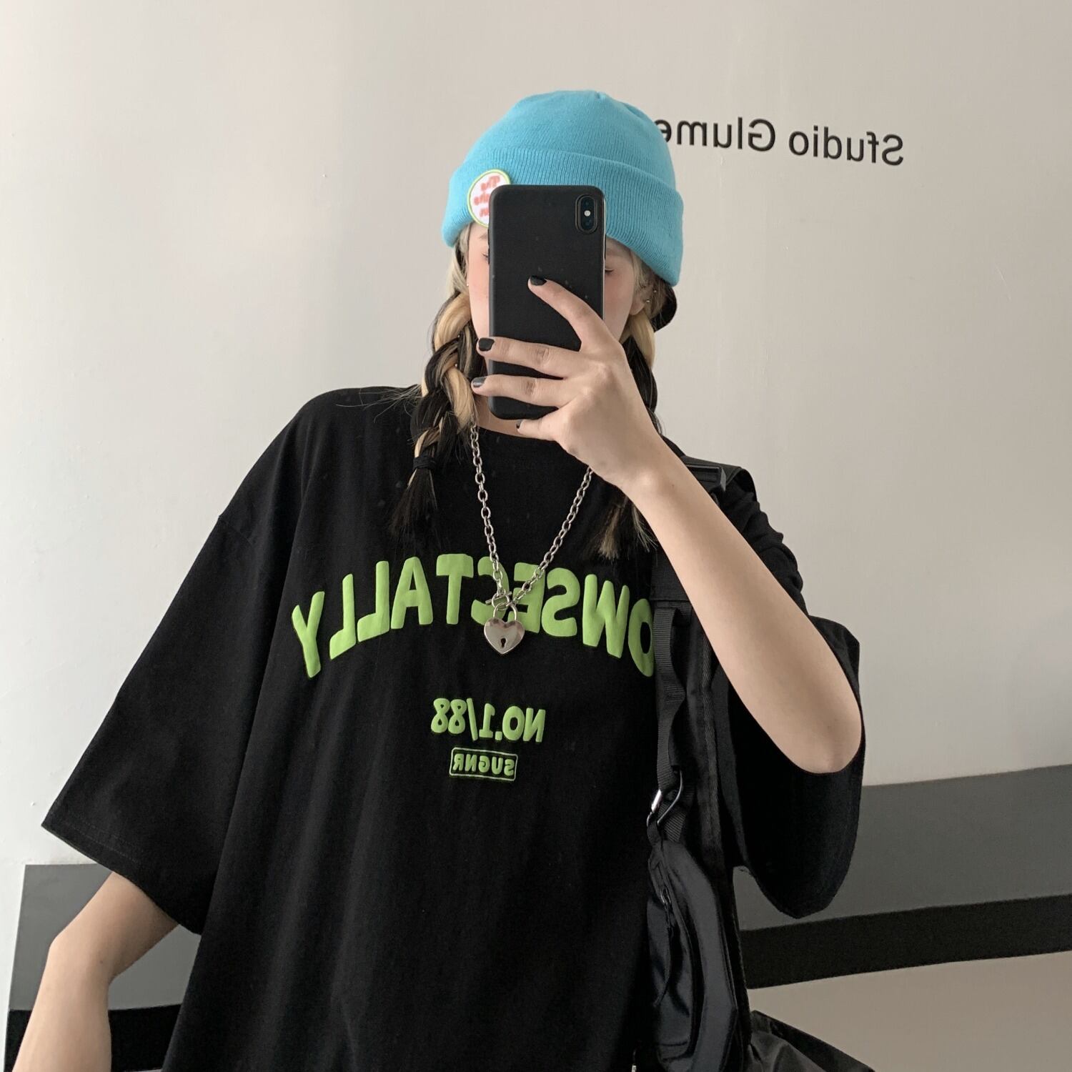 【韓国通販 dgo】2colors ユニセックス オーバーサイズ英レターT ホワイト/ブラック(M2308)