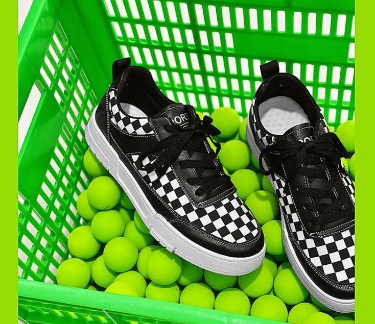 【韓国通販 dgo】ユニセックス レースアップチェッカボードスニーカー ブラック(M2269)トレンドアイテム