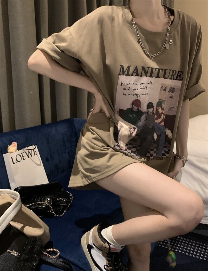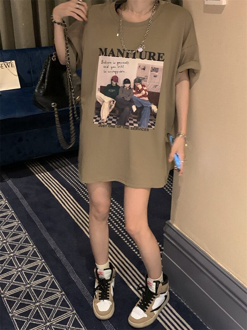 【韓国通販 dgo】オーバーサイズフォトプリントTシャツ アーミーグリーン/ブラック(W2258)
