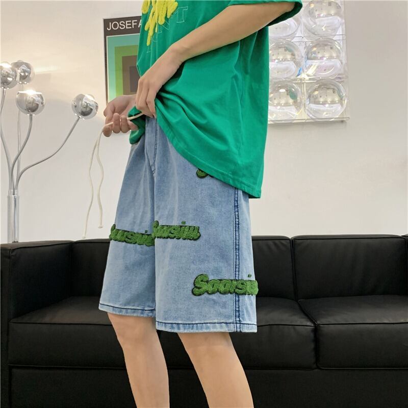 【韓国通販 dgo】2colors フロッキングアルファベットハーフジーンズ ブラック/ブル−(M2257)トレンドアイテム