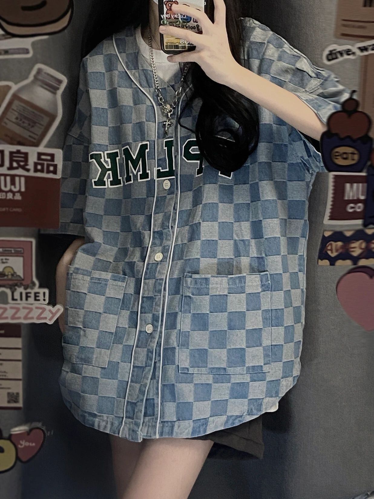 【韓国通販 dgo】チェック柄デニムシャツ(W2248)