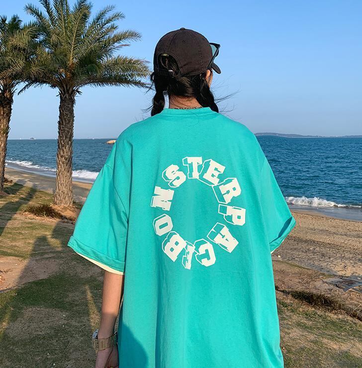 【韓国通販 dgo】4colors オーバーサイズバック英ロゴプリントTシャツ ブラック/ブルー/グリーン(M2245)センス溢れるファッションitem