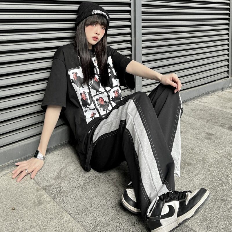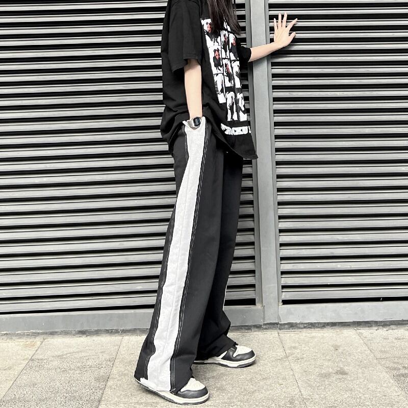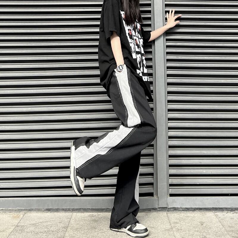 【韓国通販 dgo】ワイドレッグトラックパンツ ブラック&ライトグレー(W2241)