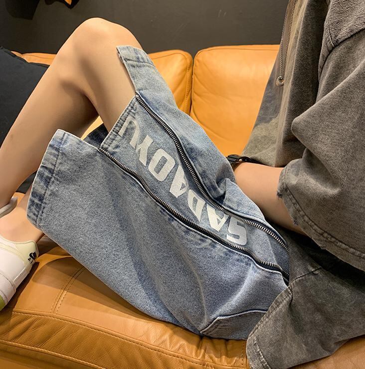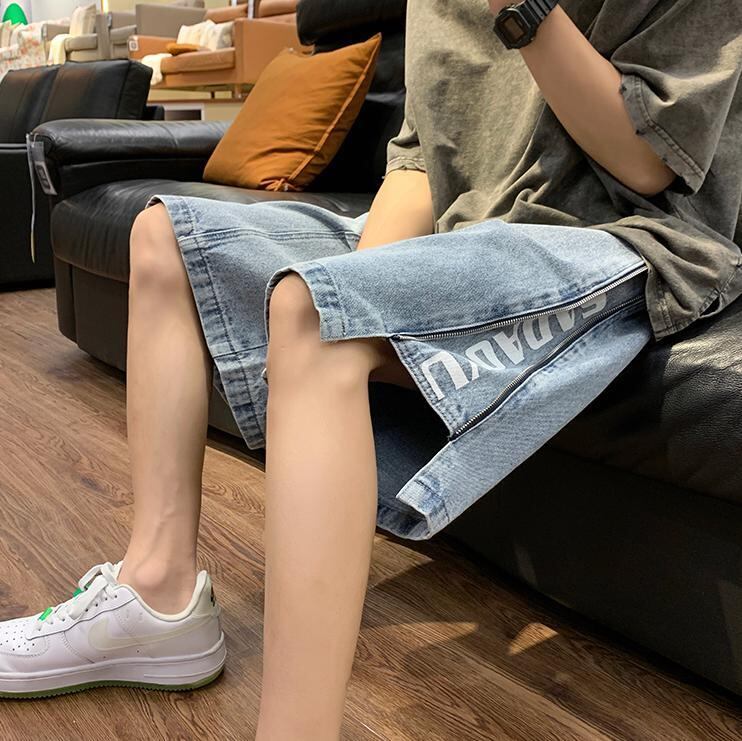 【韓国通販 dgo】2colors 英ロゴレタープリントハーフジーンズ ライトブルー/ブラック(M2232)
