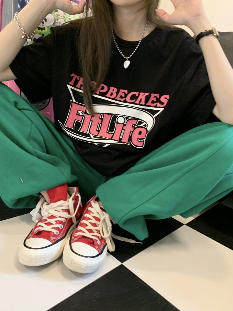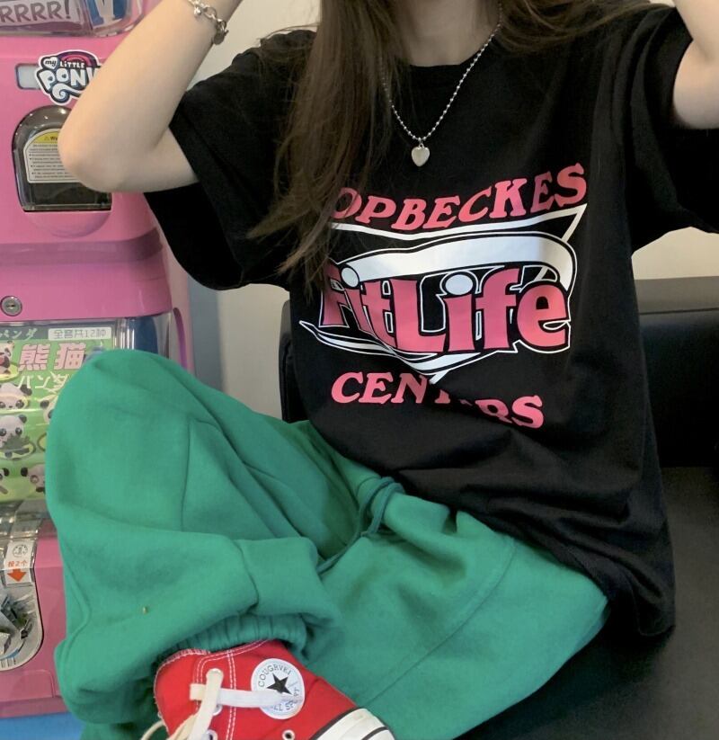 【韓国通販 dgo】オーバーサイズ英ロゴプリントTシャツ ブラック(W2229)トレンドアイテム