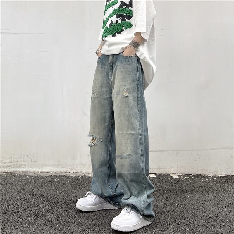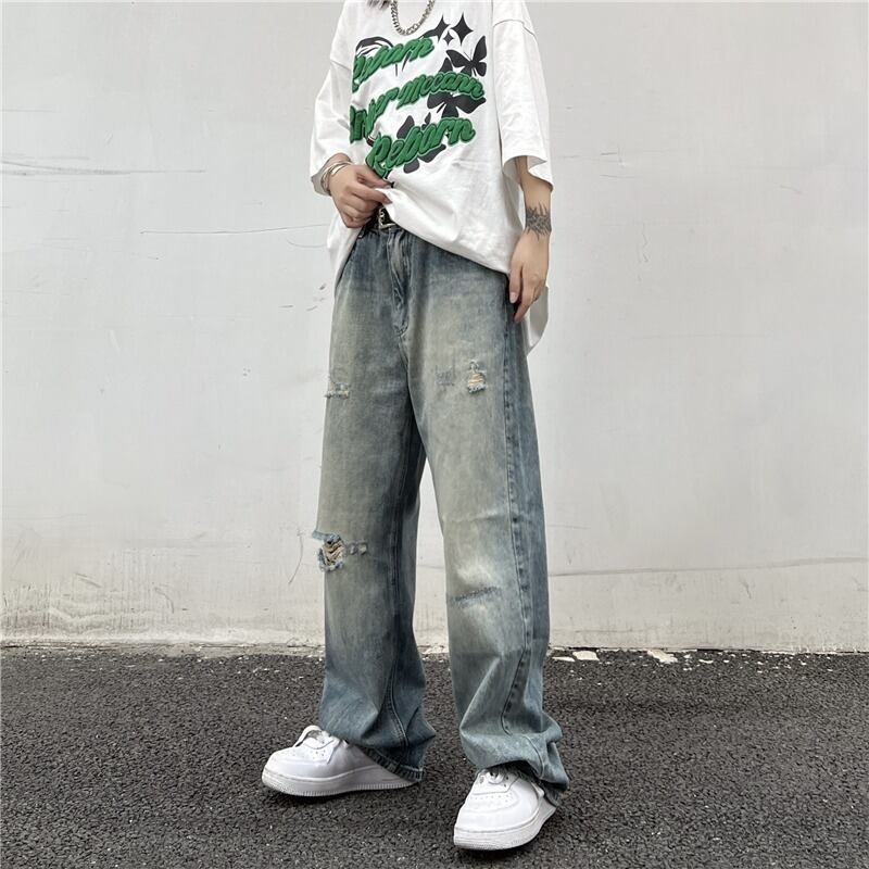 【韓国通販 dgo】ウォッシュドルーズストレートジーンズ ライトブルー(M2618)