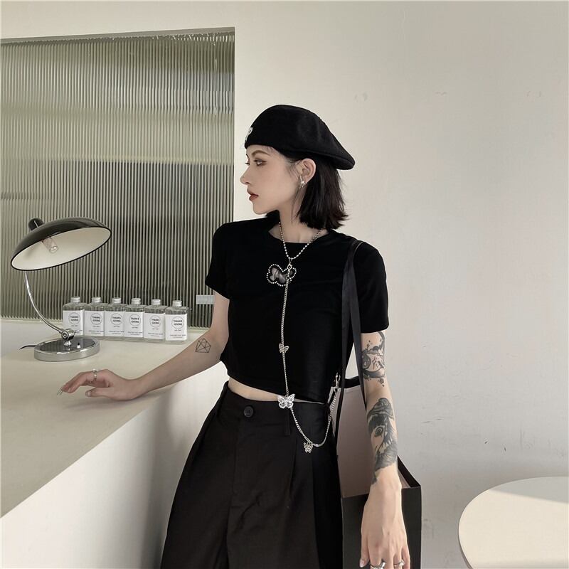 【韓国通販 dgo】2colors クルーネックショートトップス ホワイト/ブラック(M2621)