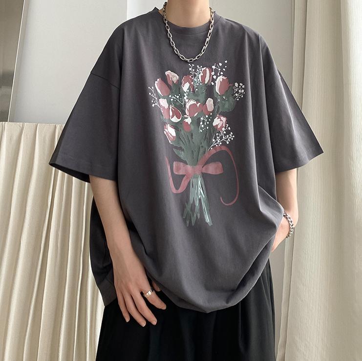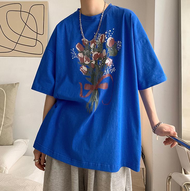 【韓国通販 dgo】5colors オーバーサイズプリントTシャツ ブラック/ホワイト/クラインブルー/グレー/ブラウン(M2629)トレンドアイテム