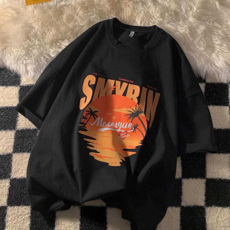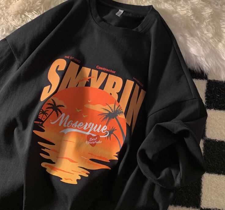 【韓国通販 dgo】4colors オーバーサイズサマーT"sunset" グレー/ホワイト/ブラック/ブルー(M2638)