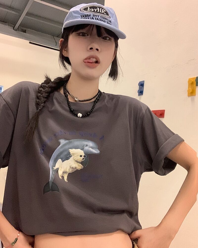 【韓国通販 dgo】2colors オーバーサイズプリントT"ドルフィン&ドッグ" ホワイト/グレー(M2641)